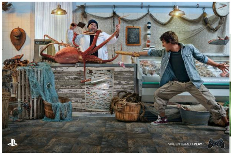 Robas una foto de una campaña de Playstation, dices que la idea, la foto y la publicidad son tuyas y además te inventas hasta la pescadería. Pescadería que no existe en Barcelona. Un auténtico crack!!!
