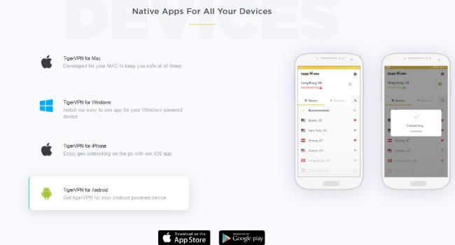 Navega a toda velocidad: Con TigerVPN, experimentaras la verdadera velocidad cuando navegas en la web. Podrás jugar en línea, descargar videos, ver películas o simplemente visita todo el contenido web disponible.