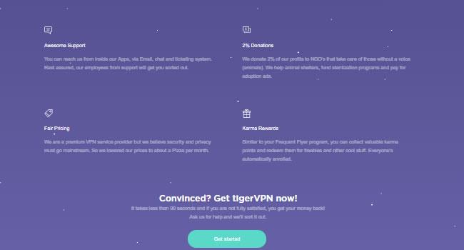 TigerVPN funciona de forma rápida y sencilla. En la web oficial se pueden encontrar el Tutorial TigerVPN, que nos dará una amplitud detallada de su software el cual es compatible con los más recientes protocolos de seguridad sobre encriptación de datos, que nos ayudará a navegar sin dejar rastros de datos de forma anónima ya que la dirección IP es totalmente confidencial. TigerVPN review, por su simplicidad es una herramienta que puede ser gestionada por todo tipo de usuario, pero a la vez es potente en cuanto al servicio que ofrece: seguridad, eficiencia, velocidad y privacidad. Es la herramienta virtual necesaria para toda clase de cliente.