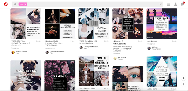 En pinterest vienen muchas opciones de como retocar las fotos según como queramos nuestro feed. Aquí os dejo unos cuantos ejemplos de la aplicación VSCO.