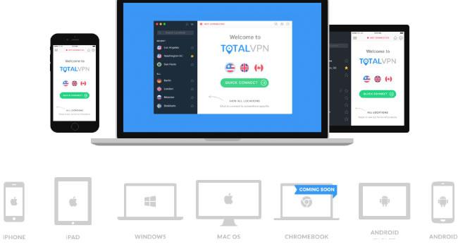 Esta VPN es una aplicación que funciona tanto en una PC de escritorio, computadora pórtatil, tableta, teléfono inteligente y netbook.Total VPN Mac