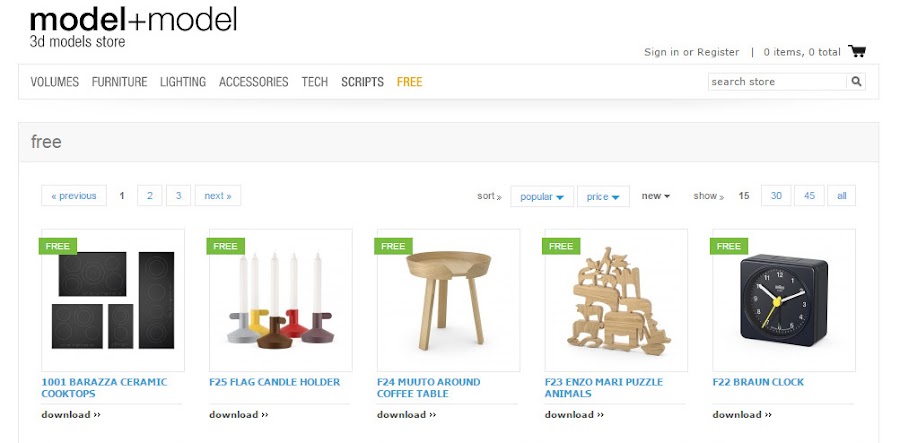 Si sigues el blog sabrás que no es la primera vez que recomendamos webs de este tipo, puedes consultar también los post Descargar bloques para 3D Max gratis y Colección de bloques 3D de mobiliario, gratis.