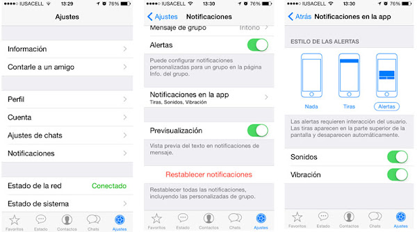 Para hacerlo con Android, entra en los ajustes de la aplicación dentro de WhatsApp, pulsa en notificaciones y entra en notificaciones emergentes. Marca la opción de mostrar siempre elemento emergente