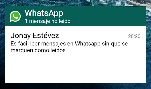 Como bien sabréis cada vez que nos entra un mensaje de WhatsApp nos deja una notificación arriba en nuestra pantalla, en este caso, lo que deberemos hacer es sencillo, antes y SOLO ANTES de leer el mensaje, activaremos el Modo Avión, ésto tiene el efecto de desactivar los datos o tu conexión Wi-fi con lo que podremos entrar a leer el mensaje que haya llegado, y cuando lo hayamos leído tenemos que salir de la aplicación y cerrarla para que no llegue a marcar como leido el mensaje antes de que quitemos el Modo Avión.