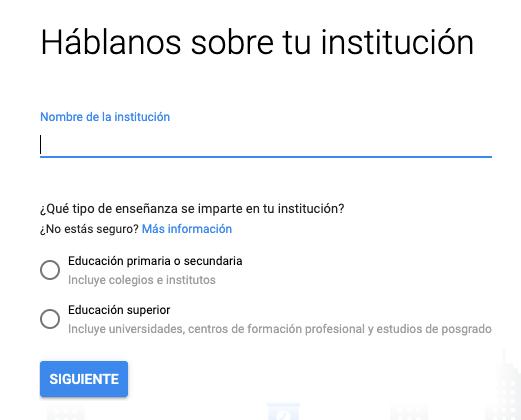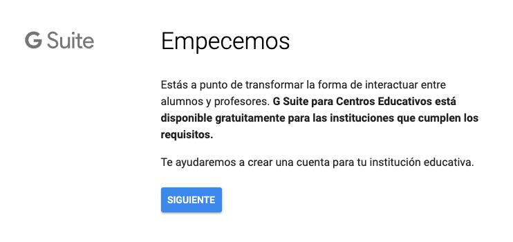 Para empezar tenemos dos formas de hacerlo, la primera y la más adecuada sería registrar el centro educativo en la plataforma G-Suite for education de Google.Regístrate en GSuite