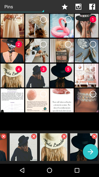 3-Selecciona cuantas fotos quieres para tu collage y luego le das a la flechita.
