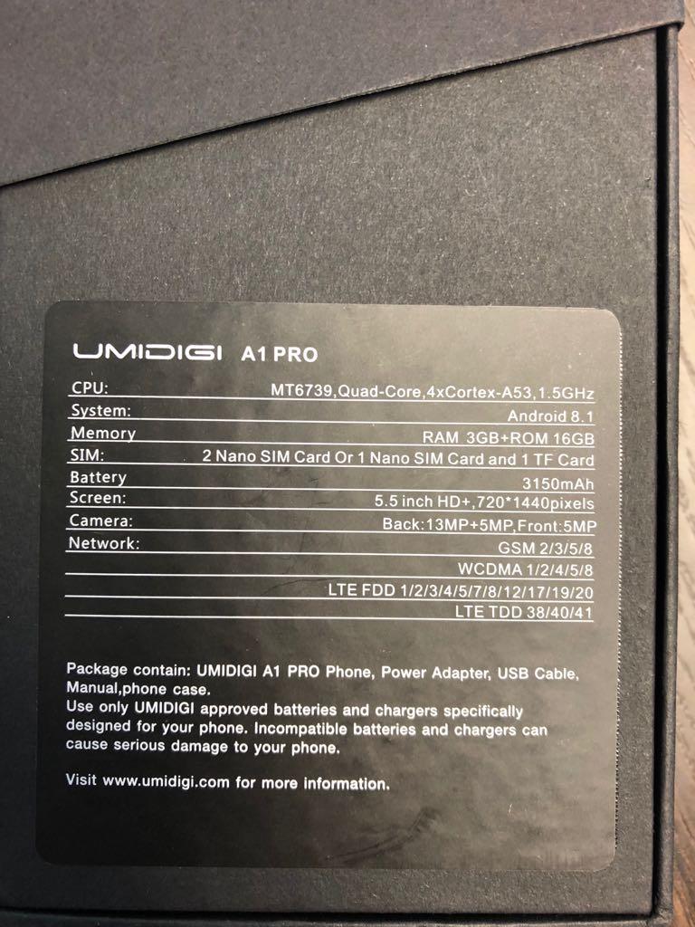 Precio y garantía del smartphone UMIDIGI A1 Pro