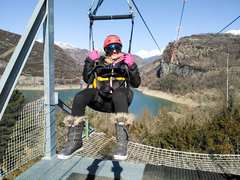 La otra razón principal es que antes de ir a Lacuniacha nos tiramos por la Tirolina del Valle de Tena. Fue una experiencia maravillosa. Al principio da un poco de sensación, porque es bastante alta y larga y discurre sobre el río, pero después es como si dejaras todos los nervios atrás y bajases más relajado y tranquilo de lo que estabas. Nosotros la recomendamos totalmente.