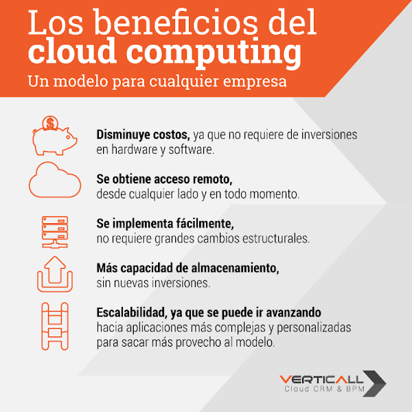 Para finalizar este compendio de recursos de aprendizaje sobre la nube te dejamos una infografía que nos habla de los beneficios del Computo en la Nube. Esta infografía fue creada por la empresa Verticall.