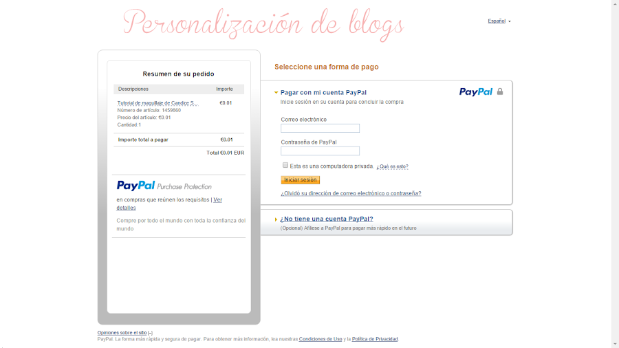 Y si meto mis datos de Paypal para pagar y le doy a comprar y a completar compra, me lleva a la página en la que me puedo descargar el tutorial.