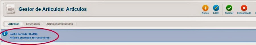 Y solucionado. Cada vez que hagamos un cambio la caché se limpiará de forma automática, nos saldrá un menesaje en la parte superior izquierda, como muestra la magen de abajo, y veremos las modificaciones de forma inmediata en la web.