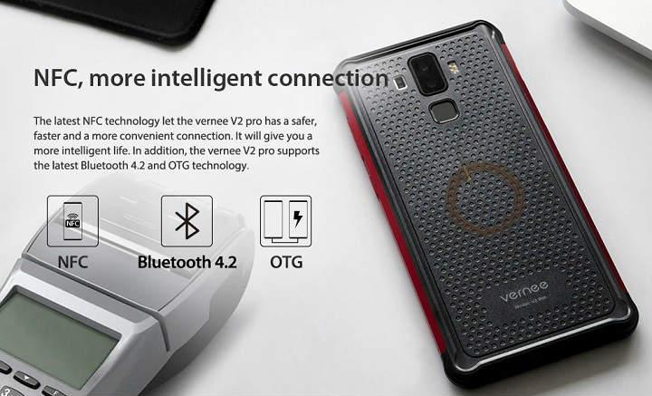 El V2 Pro dispone de sistema de navegación dual de GPS+GLONASS, conexión NFC, Bluetooth 4.2 y OTG. Cuenta con ranura para dual SIM (nano+nano) y soporta las siguientes redes: