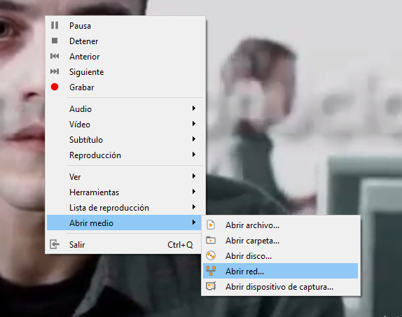 Para poder ver un vídeo desde youtube , le damos clic derecho en el programa > abrir medio, luego abrir red