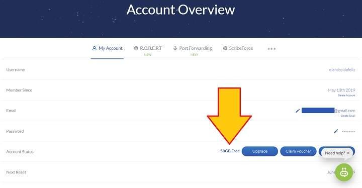Ahora, si entramos en nuestro perfil de Windscribe podemos comprobar que el cupón se ha aplicado y que tenemos 50GB de consumo mensual gratuito.