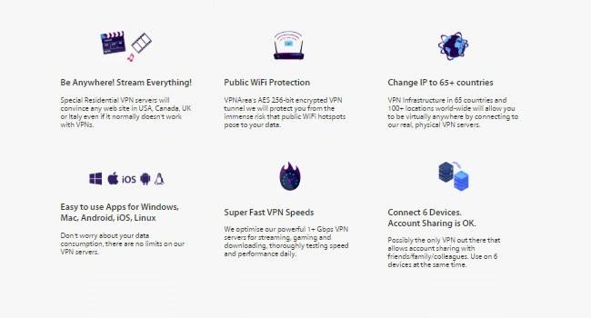 A través de esta VPNArea review podrás enterarte de todos los beneficios y promociones. Por eso te dejamos todo el conjunto de características para que te decidas de una vez por todas por este servidor: