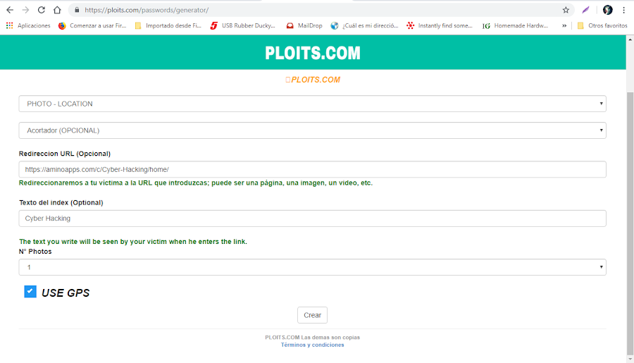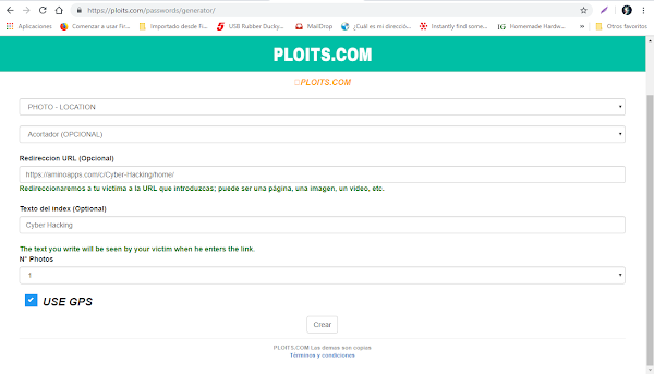Rellenamos los datos y elegimos que pagina deseamos que generar (facebook,instragram,wordpress, etc)
