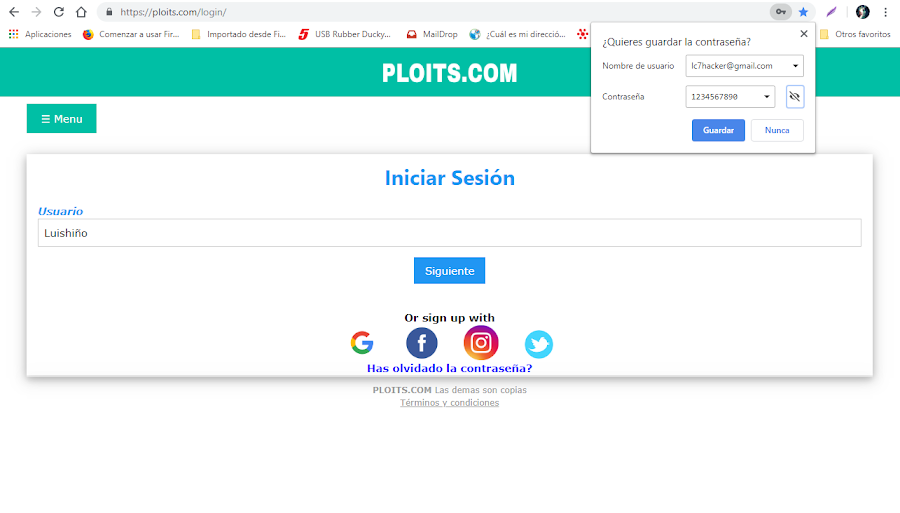Una vez que intruse sus datos la victima ingresamos a ver las contraseñas.