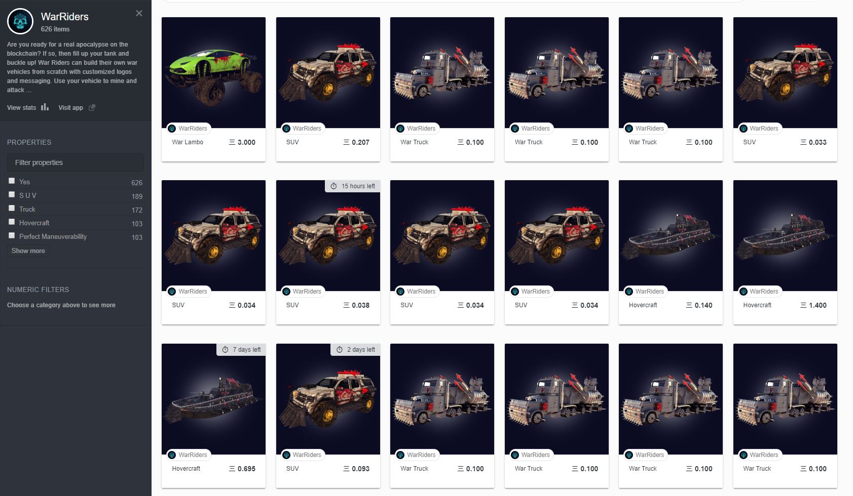 Todavía no hay una fecha exacta para su lanzamiento. Sin embargo, en el día de ayer empezó la preventa de los vehículos en los sitios web de OpenSea y War Riders. Ambas webs comparten el mismo smart contract con actualizaciones en tiempo real. La preventa durará 2 meses, pero por ahora solo está disponible para usuarios previamente registrados en la web del juego.