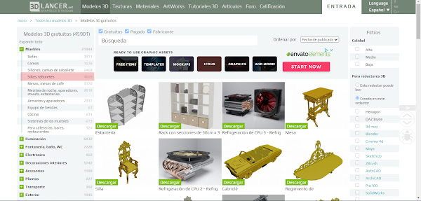 Creemos que es una web bastante interesante, además encontramos multitud de bloques y muy bien organizados, además de una web muy completa dónde encontraras más de 45.000 archivos de modelos 3D gratis.