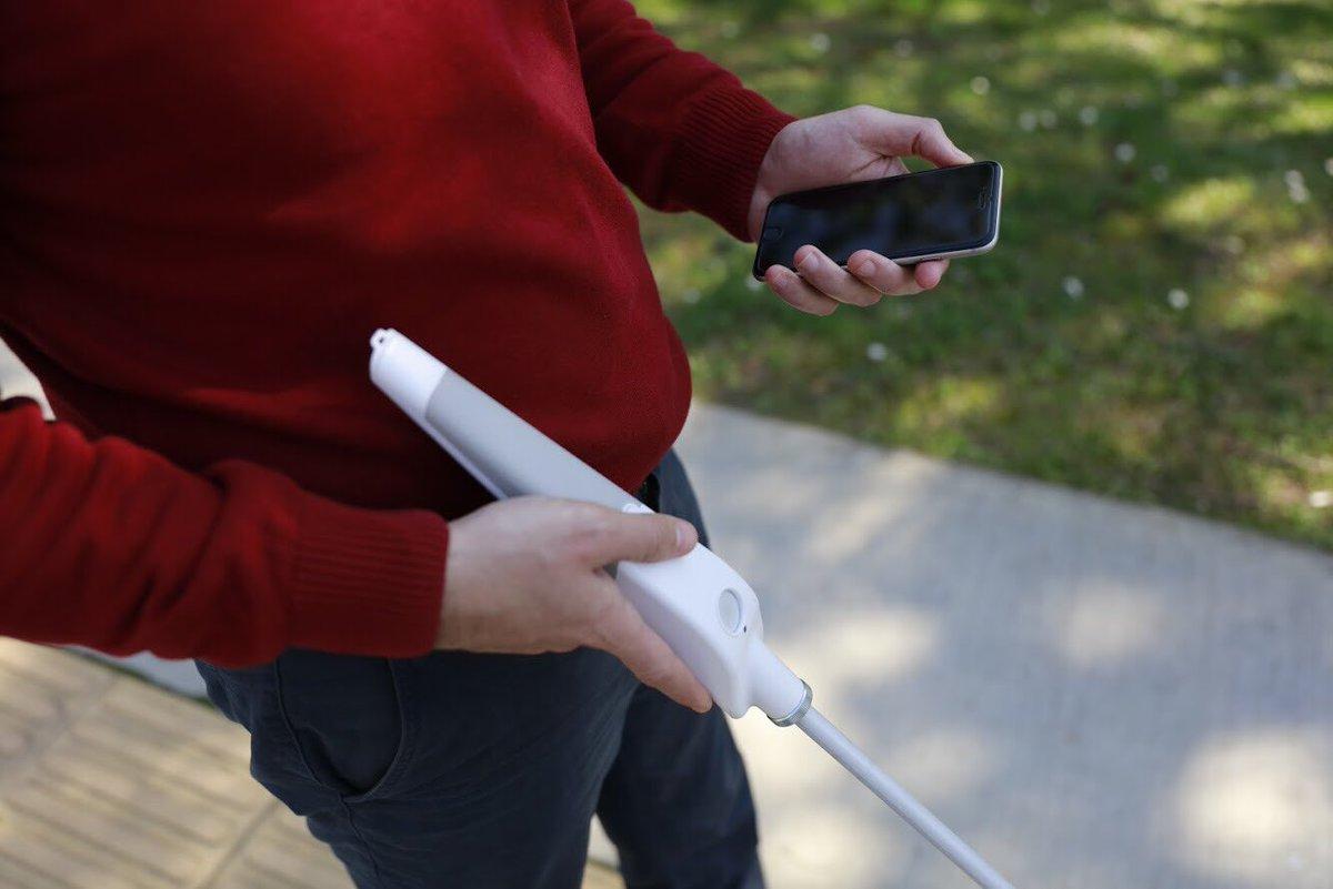 El WeWALK es un bastón inteligente que integra Google Maps para permitirle a las personas ciegas desplazarse de un lugar a otro de manera más segura y eficiente.