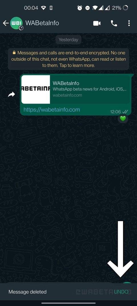 Es posible que necesites deshacer los borrados si te has equivocado y has utilizado el botón “Borrar para mí” en lugar del botón “Borrar para todos”. En este momento, es mejor revertir un borrado que volver a escribir un mensaje.