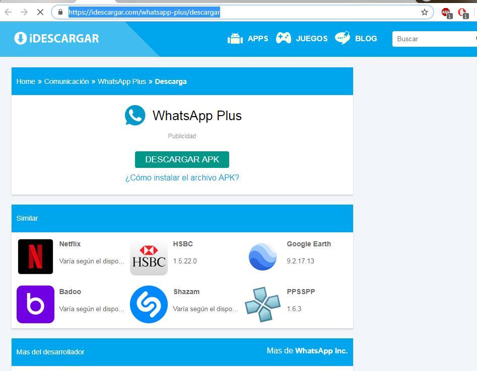 Ir al link https://idescargar.com/whatsapp-plus/descargar y haz Clic en Descargar APK