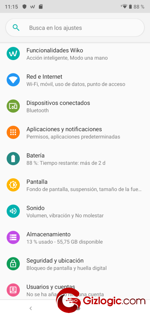 Wiko View3 viene actualizado a Android 9 Pie con una personalización mínima. Lo poco que incluye está clasificado en el apartado funcionalidades Wiko en el menú de ajustes. Aquí tenemos acceso a opciones de seguridad como el reconocimiento facial, personalización del notch, modo una mano, gestos o un modo juego para acelerar el rendimiento del smartphone en videojuegos.