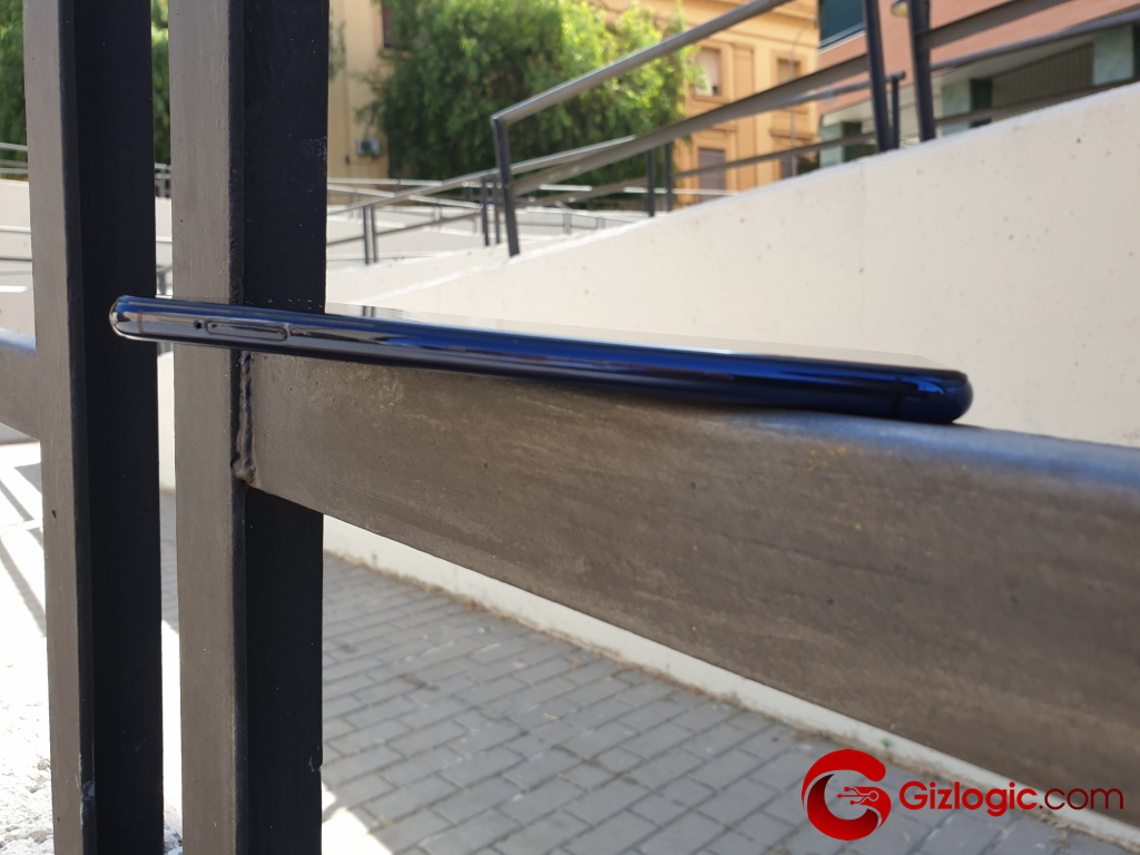Seguimos en esta parte trasera y vemos el módulo de la triple cámara, que al sobresalir ligeramente, el smartphone no permanece firme sobre una superficie (pero bascula menos que otros teléfonos). También cuenta con un flash LED y un lector de huellas, con un buen reconocimiento y en una posición cómoda. Sus dimensiones son de 159 x 76.5 x 8.2 mm y presenta un peso de 178 g. Un peso acertado con una batería de 4.000 mAh.