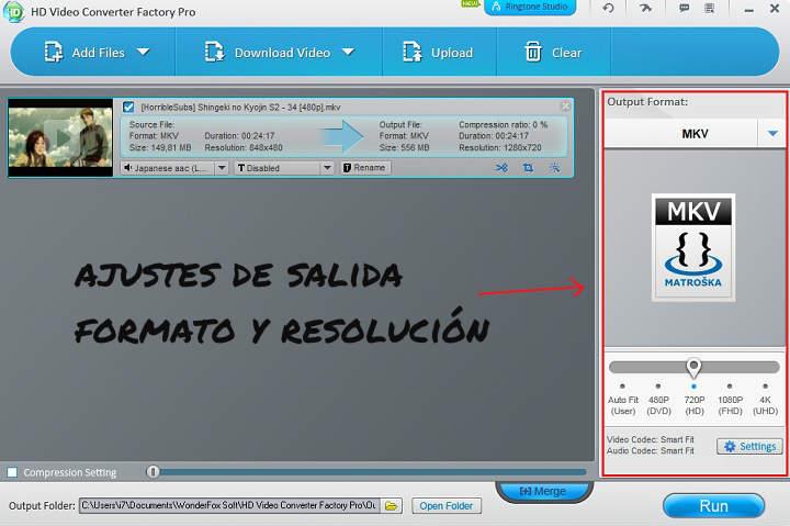 Las 2 características que más me llaman la atención del HD Video Converter Factory Pro son las de conversión de SD a HD y el ratio de compresión que promete la herramienta. Así que nada mejor que ponerlo a prueba.