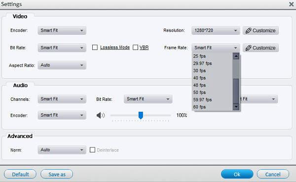 Antes de realizar la conversión, también podemos pulsar sobre “Settings” para aumentar o modificar los codecs de video y audio. Así, podemos ajustar a nuestro gusto cosas como el Encoder, el Frame Rate y el Bit Rate del archivo.