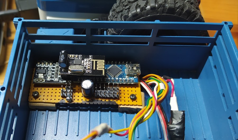 El Arduino pensé primero en ponerlo en la cabina, o bajo ella, pero el espacio es bastante reducido y mi "versión" de receptor RC no es pequeño precisamente.