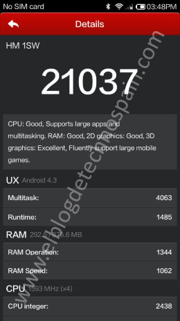 En las pruebas realizadas con Antutu es capaz de alcanzar los respetables 21.000 puntos para su precio/prestaciones. Al utilizar juegos Android se desenvuelve como un auténtico 4x4, es una delicia probar maravillas como el Real Racing 3, te hacen darte cuenta de lo bien que se ha implementado cada driver y cada detalle de configuración en el software MIUI.