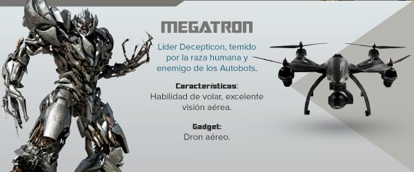 Un dron aéreo sería el gadget perfecto para que Megatron pudiera esconder su verdadera identidad en el planeta Tierra, ya que puede tener desde dos hasta ocho hélices que le permitan seguir teniendo la habilidad de volar. Además, cuenta con GPS para poder identificar su ubicación exacta y una cámara que le daría acceso a una mejor visión de los movimientos de los Autobots.