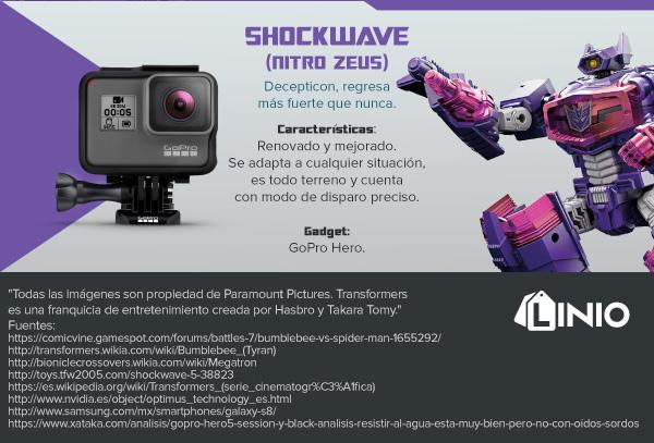 Shockwave puede compararse con una GoPro Hero, ya que esta última muestra que las cámaras fotográficas existirán por mucho tiempo y sin importar el rival, seguirá luchando para demostrar que aún tiene mucho que dar. Además, ambos cuentan con características todoterreno y un modo de disparo preciso e inigualable para lograr dar con sus objetivos.